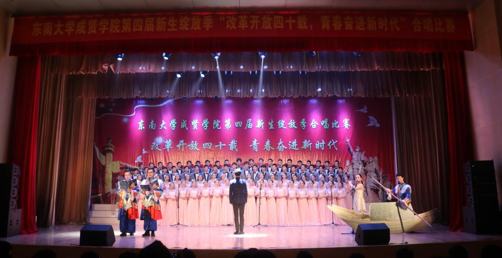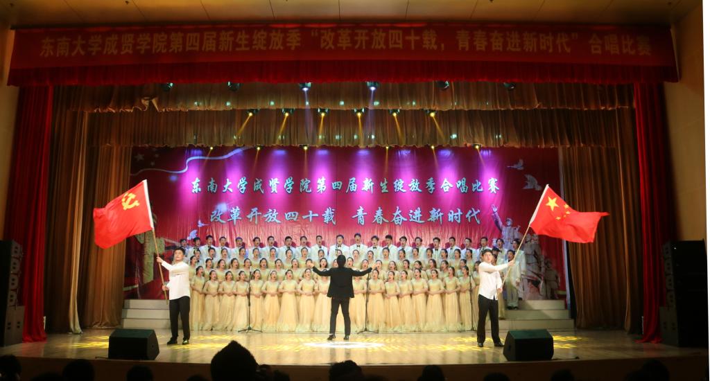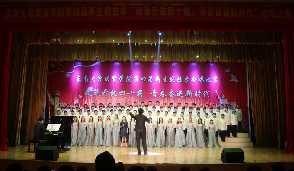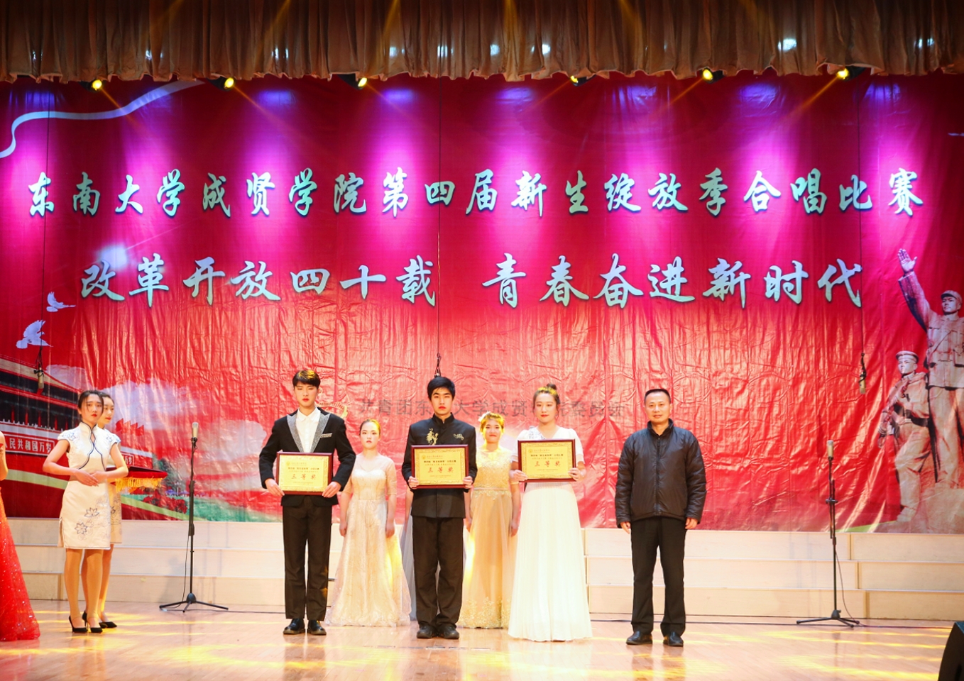 比赛中,大学生艺术指导中心音乐团倾情演绎歌曲《望春风》,展现了经典民谣的优美旋律;各学院老师积极参与指导与演出,师生们通力合作,用铿锵有力、激昂向上的歌声引发了观众对改革开放四十周年来伟大变革的共鸣,充分表达出成贤学子更加坚定走中国特色社会主义道路、改革开放道路的信心与决心。比赛在全场齐唱雄壮的《国产av 校歌》声中圆满结束。