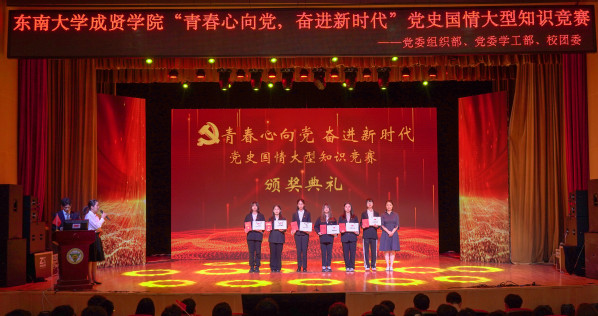 为庆祝中国共产党成立100周年,深入贯彻习近平总书记在党史教育动员大会上的重要讲话精神,落实学校党委关于党史学习教育的决策部署,5月9日晚,由学校党委组织部、党委学工部、校团委联合主办,校学生会学习部承办的“青春心向党,奋进新时代”党史国情知识竞赛在综合楼报告厅举行。党委学工部部长、学生处处长施杰,校团委书记、人武部部长潘明烽,机械与电气工程学院综合办主任李洪全,制药与化学工程学院综合办主任刘静,学院部分分团委书记、辅导员老师与近600名学生代表共同参加了比赛。