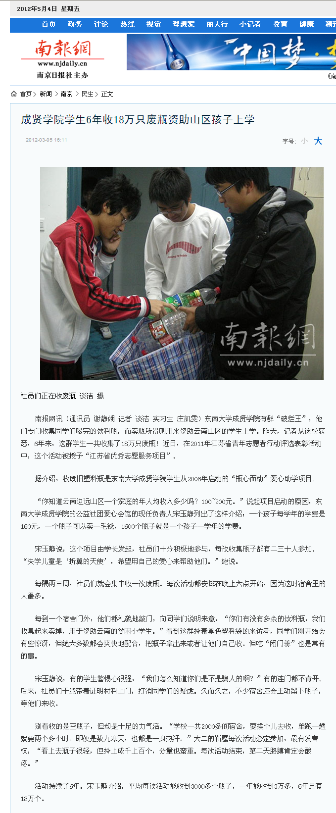 【南报网】国产av 学生6年收18万只废瓶资助山区孩子上学