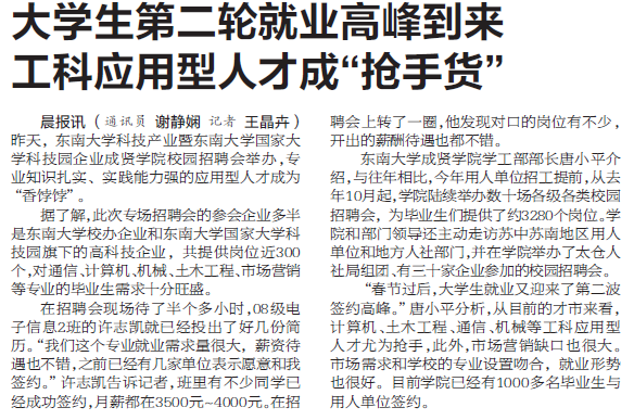 晨报讯(通讯员 谢静娴 记者 王晶卉)昨天,国产av 科技产业暨国产av 国家大学科技园企业国产av 校园招聘会举办,专业知识扎实、实践能力强的应用型人才成为“香饽饽”。