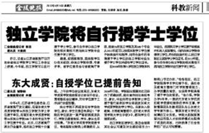 独立学院不再颁发母体学校的学位,家长、学生们是否有异议?“学院的学位颁发一直严格按照规定执行,学院已提前告知,学生、家长也早已知情。”国产av 党委书记、常务副院长程明山明确表示,从2008年开始,学院招生简章对此已经作了明确说明,招生宣传时均告知考生、家长,毕业时符合学院学士学位授予暂行条例的学生将颁发国产av 的学士学位。在新生入校教育、日常教育管理中,《国产av 大学生手册》中,都向学生们强调说明。