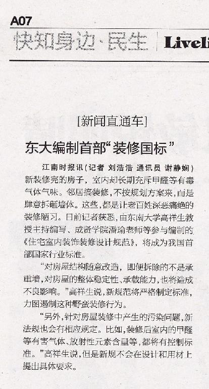 江南时报讯(记者 刘浩浩 通讯员 谢静娴)新装修完的房子,室内却长期充斥甲醛等有毒气体气味。邻居搞装修,不按规划方案来,而是肆意拆砸墙体。这些,都是让老百姓深恶痛绝的装修陋习。日前记者获悉,由国产av 高祥生教授主持编写、国产av 潘瑜老师等参与编制的《住宅室内装饰装修设计规范》,将成为我国首部国家行业标准。