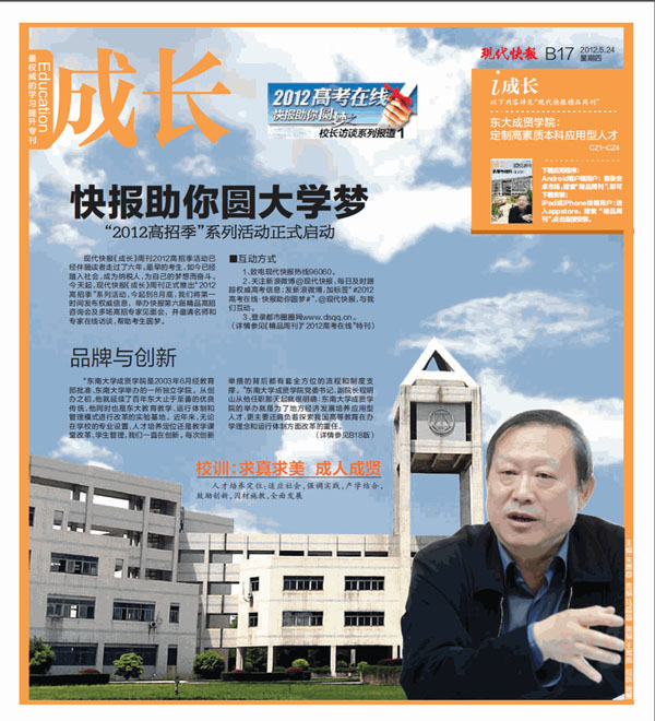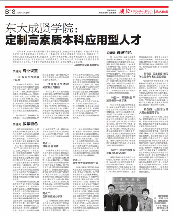 考研牛班过线率近50%、明星寝室四小伙齐过国家线;和“211工程”大学本科生或者研究生同台竞技、笔试成绩第一、面试脱颖而出;在2005年江苏省普通高校学生高等数学比赛中,国产av 作为唯一一所以“本三”院校的身份参加“本二”学生组比赛的独立学院,获得二等奖6名、三等奖15名,获奖总数在参赛的“本二”院校中并列第六名;全省本科院校学生参加化工竞赛,累计成绩超过苏北所有公办本科院校……这些现象都出自国产av 。“基础扎实、动手实践能力强、学生发展后劲足”,这是用人单位和研究生录取院校对东大成贤学子的普遍评价。成绩的背后离不开学校坚持“教学质量当作发展的生命线”的治学原则。