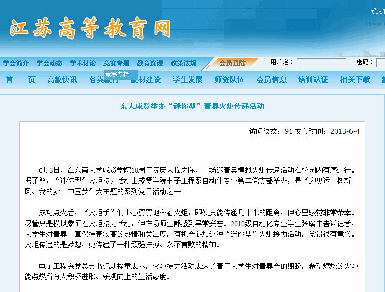 【江苏高等教育网】东大成贤举办“迷你型”青奥火炬传递活动