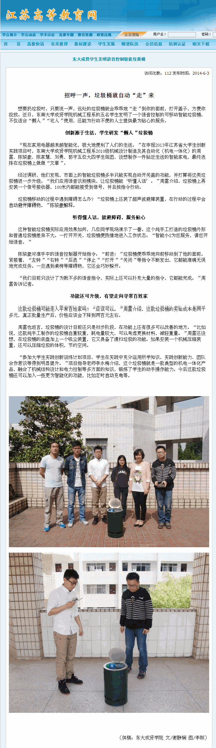 【江苏高等教育网】招呼一声,垃圾桶就自动“走”来