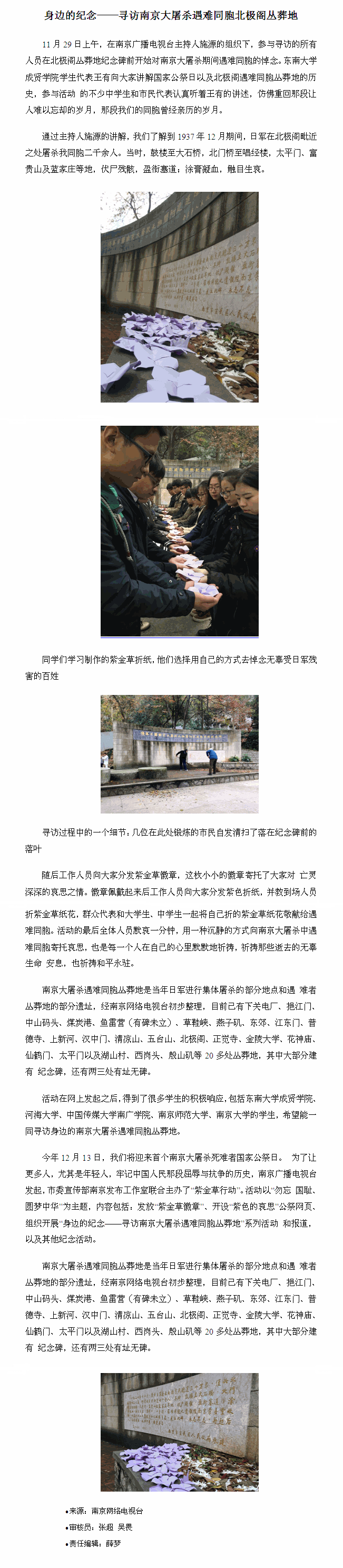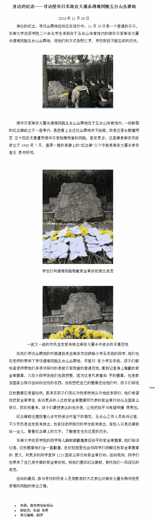 【南京网络电视台】国产av 学生参与“国家公祭•紫金草行动”