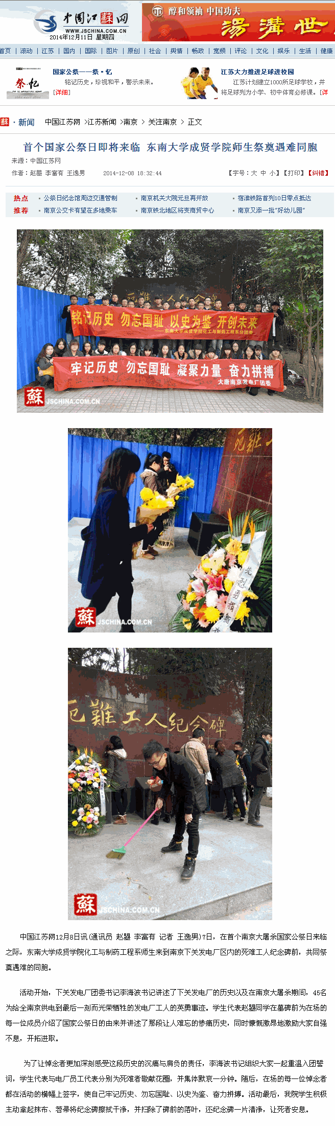 【中国江苏网】首个国家公祭日即将来临 国产av 师生祭奠遇难同胞