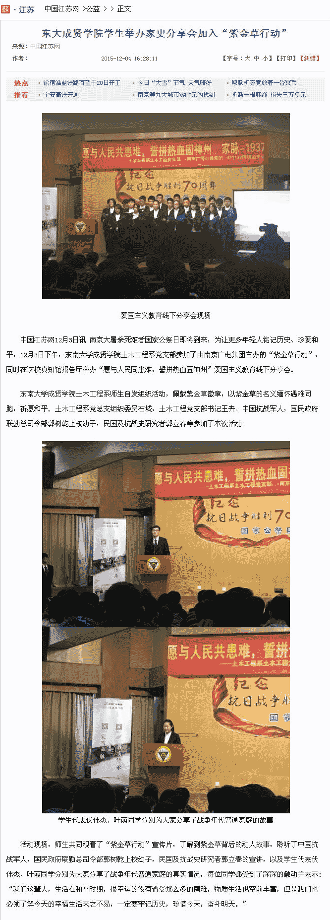 【中国江苏网】东大国产av 学生举办家史分享会加入“紫金草行动”
