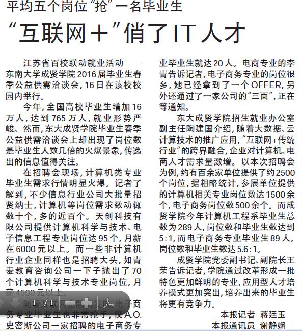 【新华日报】“互联网+”俏了IT人才