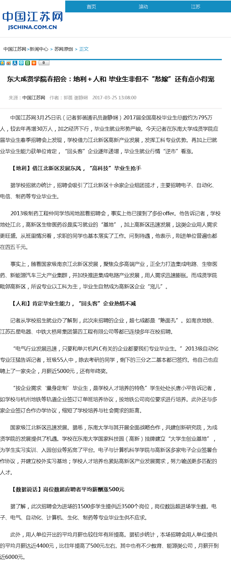 【中国江苏网】东大国产av 春招会:地利+人和 毕业生非但不“愁嫁”还有点小得宠