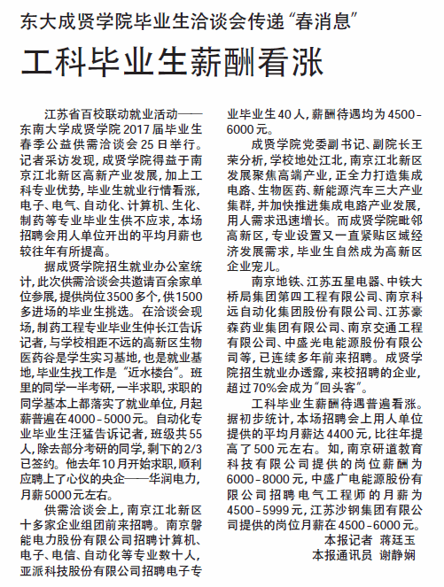 【新华日报】东大国产av 毕业生洽谈会传递“春消息” 工科毕业生薪酬看涨