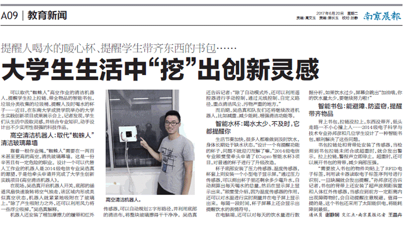 【南京晨报】大学生生活中“挖”出创新灵感