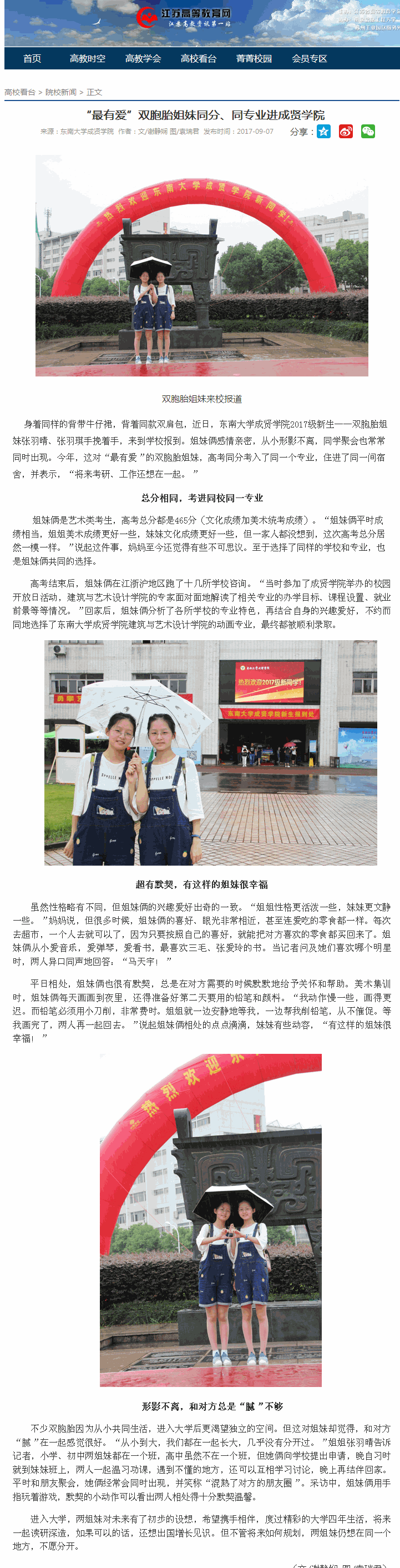 【江苏高等教育网】“最有爱”双胞胎姐妹同分、同专业进国产av