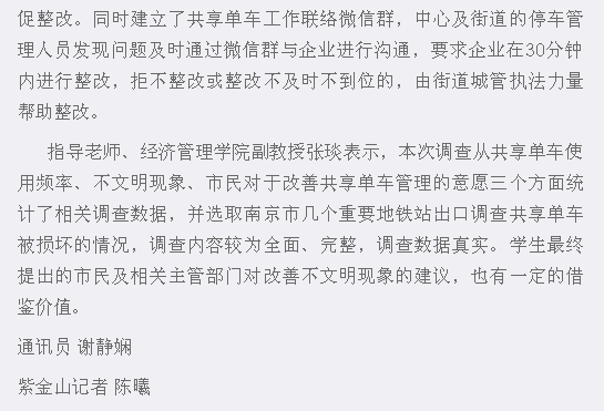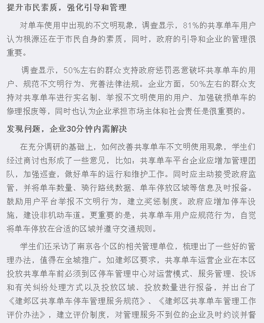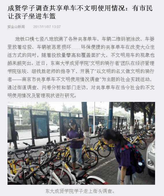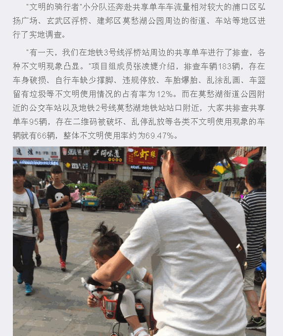 【紫金山】成贤学子调查共享单车不文明使用情况:有市民让孩子坐进车篮