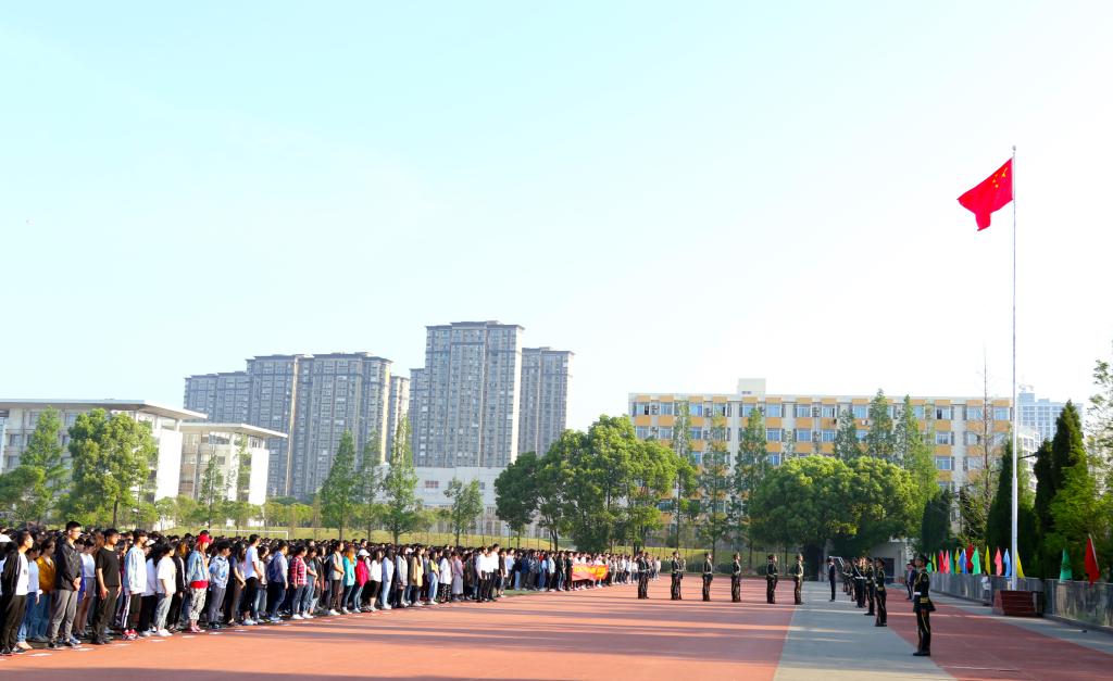 今年是五四运动99周年暨中国共产主义青年团建团96周年,为引导广大团员青年传承和弘扬“五四精神”,深入学习贯彻习近平总书记在北京大学考察时的重要讲话精神,5月4日,校团委组织“不忘初心、牢记使命——弘扬五四精神,争做时代先锋”升旗仪式。校团委书记潘明烽,部分辅导员老师,校院各学生组织骨干及近2600名学生参加了此次升旗仪式。