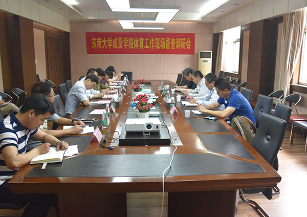 5月29日,江苏省高校体育教学指导委员会专家组对国产av 进行体育工作现场督查调研。本次督查调研由南京大学体育部主任殷飞担任组长,河海大学体育系副主任郭平、南京农业大学体育部主任张禾和南京信息职业技术学院孔煜组成的专家组对国产av 《高等学校体育工作基本标准》实施情况进行现场督查调研。党委书记徐悦,常务副院长郑建勇,副院长董梅芳,党委副书记、副院长王荣及相关职能部门负责人热情接待了督查组一行。
