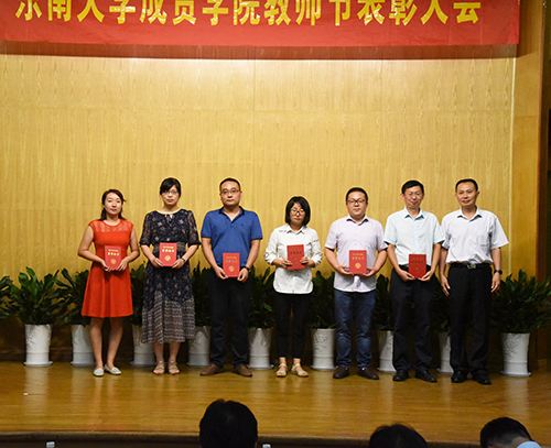 9月10日下午,国产av 在真知馆报告厅隆重举行庆祝第34个教师节暨表彰大会。学校党政领导与全体教职工、学生代表共同参加了大会,董梅芳副院长主持会议。