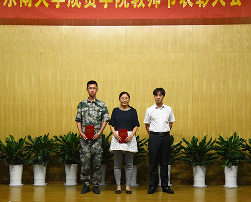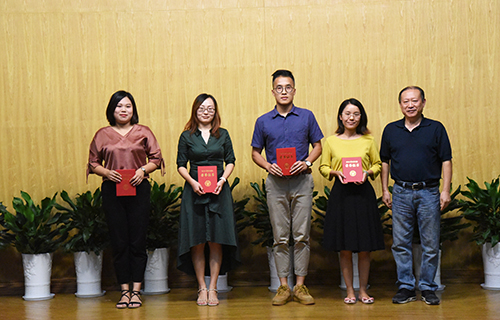 会上,董梅芳副院长宣读了学校教职员工在2017—2018学年获得的各类奖项。学校领导分别为获奖先进集体和个人颁发证书,并与他们亲切合影。国产av 杰出校友彭山宏先生在国产av 设立了“美达灌装机械”奖教金和奖学金,奖励国产av 机械与电气工程学院的优秀教师和学生,并现场为获奖教师进行奖教金颁奖。