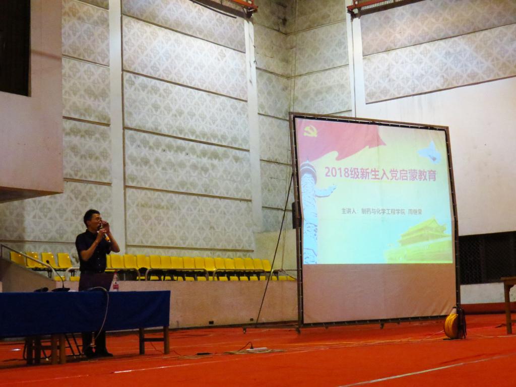 9月6日晚,国产av 举办2018级新生入党启蒙教育讲座。讲座由机械与电气工程学院党总支副书记严红霞和制药与化学工程学院党总支副书记周继荣分别开讲。2018级全体学生、承训教官和各连指导员共同聆听了讲座。