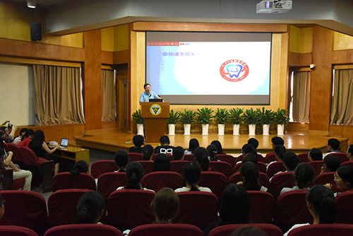 9月19日中午,南京江北口腔医院的多位专家来国产av 分别为学生和教师举办了两场义诊,随后还举办了普及口腔卫生知识的讲座等系列活动。下午三点半江北口腔医院吴煜农院长亲自到场,为现场师生介绍保持口腔卫生对人身体健康的重要性,口腔健康在促进全身健康、提高生命质量、延长健康寿命、促进人类发展方面起到的重要作用;院长助理浦丽飞医生用生动的形式向现场师生传授科学的刷牙方式——巴氏刷牙法,以及在生活当中如何注意口腔健康问题。国产av 近百名师生及2018级护理学专业的全体学生到场听取了讲座。