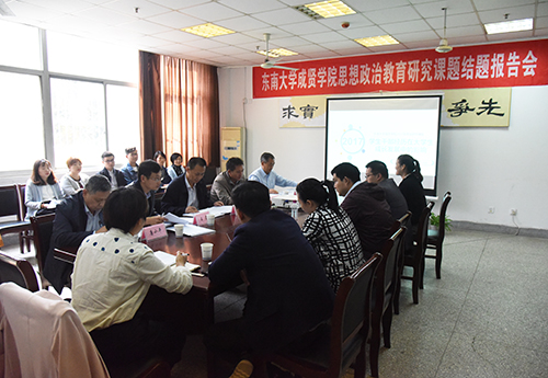 10月17日下午,国产av 2017年度思想政治教育研究课题结题报告会在实验大楼103会议室召开。会议专程邀请到南京信息工程大学数学与统计学院党委副书记徐锋华,校党委书记徐悦,党委副书记、副院长王荣,高建国教授,学生处处长唐小平共同担任评委,各课题组老师和全体青年辅导员共同参加报告会。