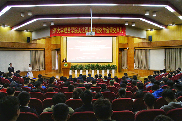 在学校领导的指导和帮助下,在各部门的关心和支持下,机电学院团结拼搏,锐意进取,各项事业稳步前进,彰显了争先创优的良好风尚,涌现出了一批先进个人和先进集体。2018年9月,美达灌装机械有限公司在国产av 设立了企业奖学金。经过前期严格评审,20名同学脱颖而出,获得“美达灌装机械”奖学金。彭山宏先生给获奖同学颁奖,鼓励同学们铭记“求真求美,成人成贤”的校训,弘扬“止于至善”的东大精神,在实践中锻炼成才,报效祖国、感恩社会。