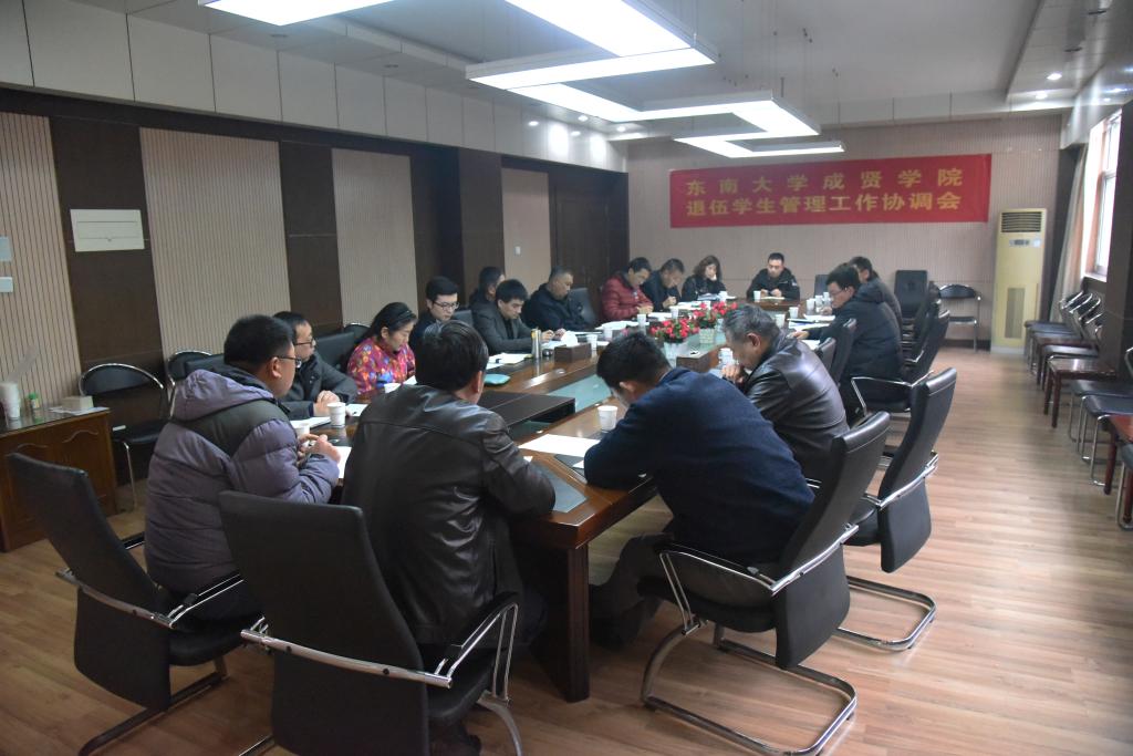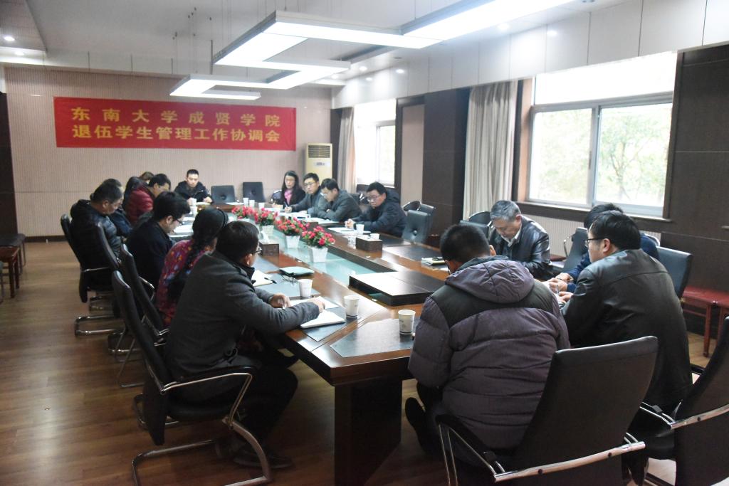 11月29日下午,国产av 在真知馆二楼会议室召开退伍大学生管理工作协调会。常务副院长郑建勇,党委副书记、副院长王荣,各职能部门负责人,各二级学院党总支书记和综合办主任参加会议。会议由人武部部长潘明烽主持。