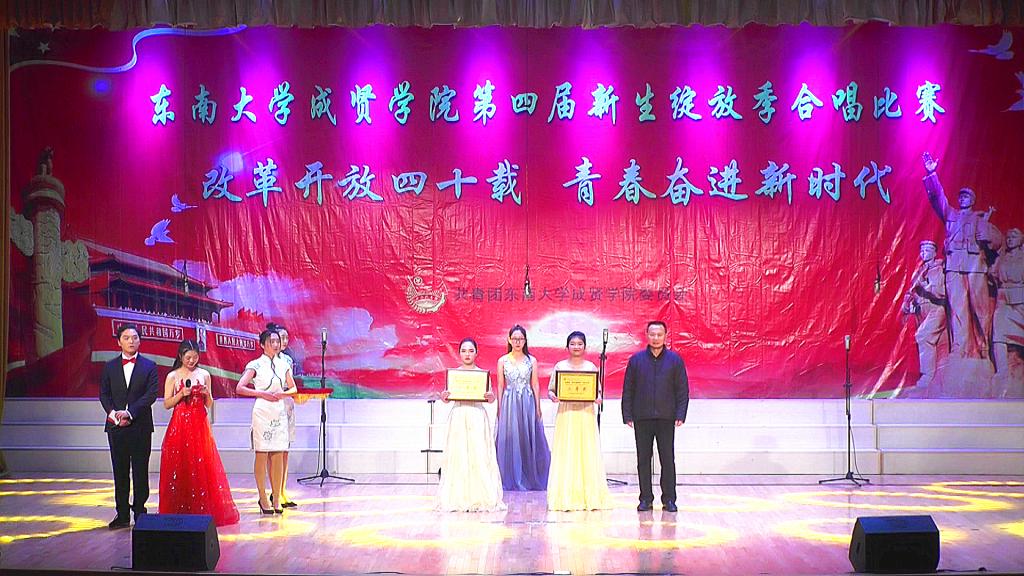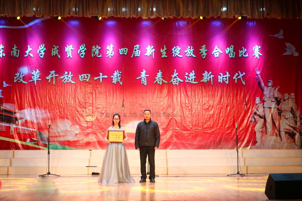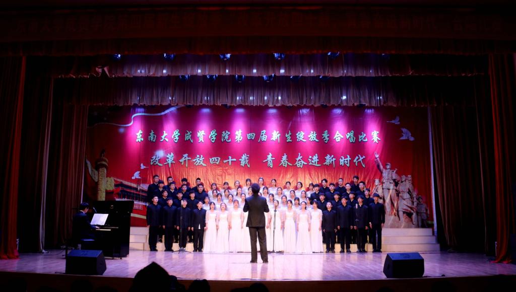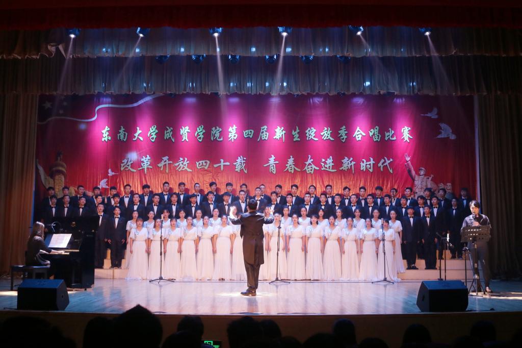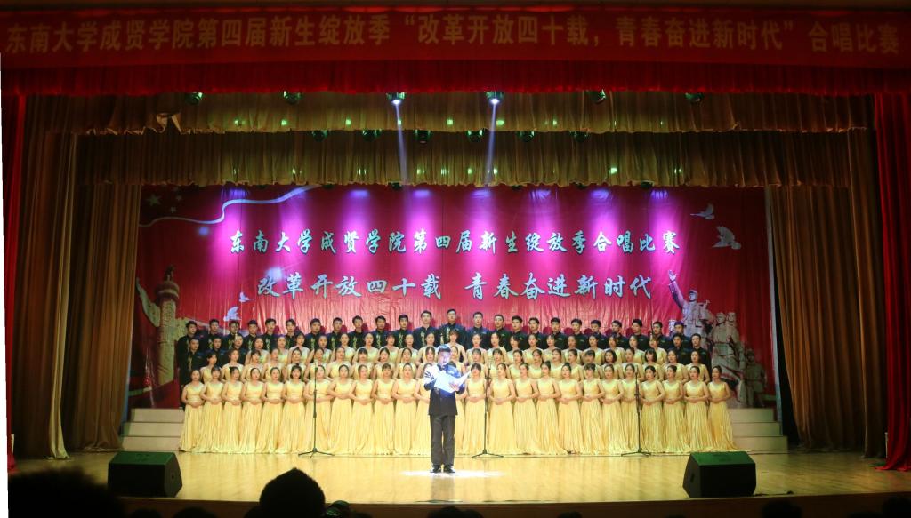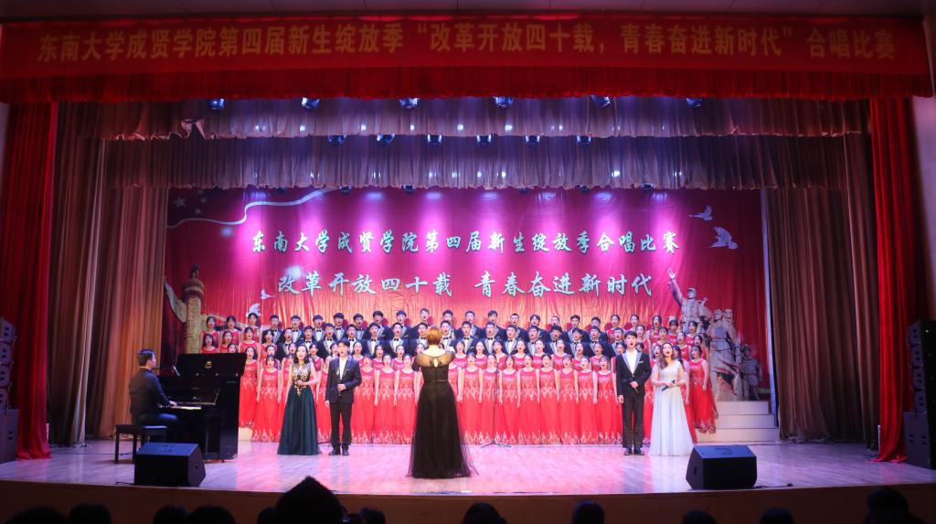 比赛中,大学生艺术指导中心音乐团倾情演绎歌曲《望春风》,展现了经典民谣的优美旋律;各学院老师积极参与指导与演出,师生们通力合作,用铿锵有力、激昂向上的歌声引发了观众对改革开放四十周年来伟大变革的共鸣,充分表达出成贤学子更加坚定走中国特色社会主义道路、改革开放道路的信心与决心。比赛在全场齐唱雄壮的《国产av 校歌》声中圆满结束。