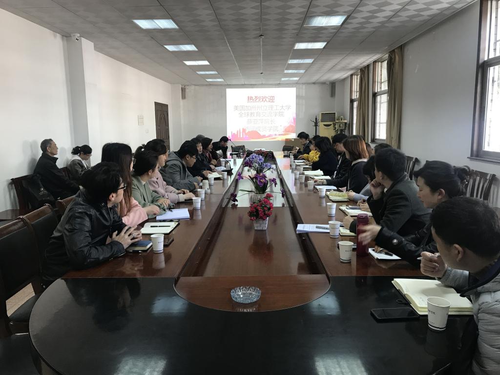 3月13日上午,美国加州州立理工大学(波莫纳)全球教育交流学院院长薛亚萍访问国产av 。国产av 常务副院长许映秋、二级学院负责人、综合办主任以及辅导员代表参加了本次座谈交流会。