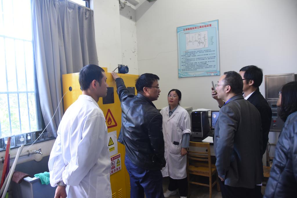 4月17日下午,江苏省教育厅专项检查组对国产av 进行了2019年高校实验室安全管理现场检查工作。检查组专家由南京大学国资处处长华子春、扬州大学实验室环保与智能装备研究所所长周骥平、南京医科大学资产和产业管理处处长俞宝龙、苏州大学药学院实验室主任金雪明、南京中医药大学联络员祖强组成。国产av 常务副院长许映秋,副院长董梅芳,党委副书记、副院长王荣,相关职能部门负责人、各二级学院(部)党政负责人、实验实训中心负责人及相关教师参加了此次检查工作。