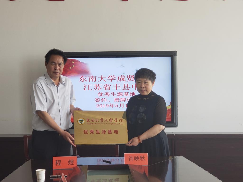 5月16日,国产av 常务副院长许映秋,党委副书记、副院长王荣及徐州招生组老师一行前往徐州市丰县中学、徐州市丰县民族中学进行招生调研走访,并在丰县中学举行了“优秀生源基地”挂牌仪式。