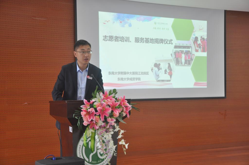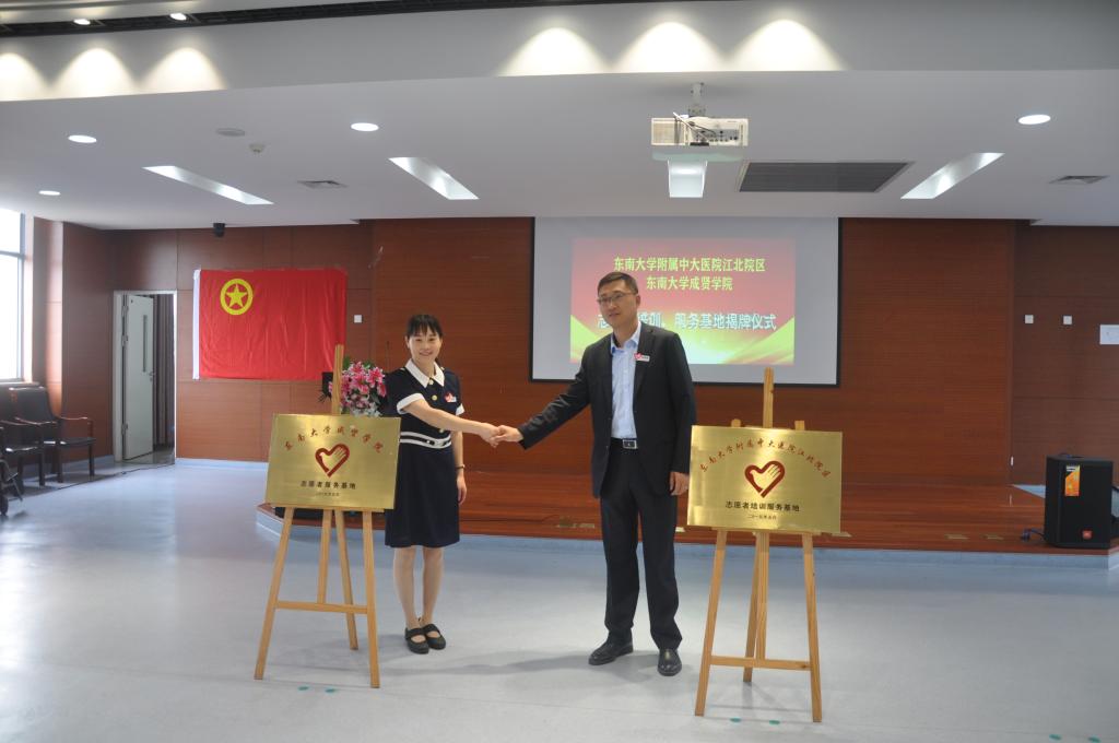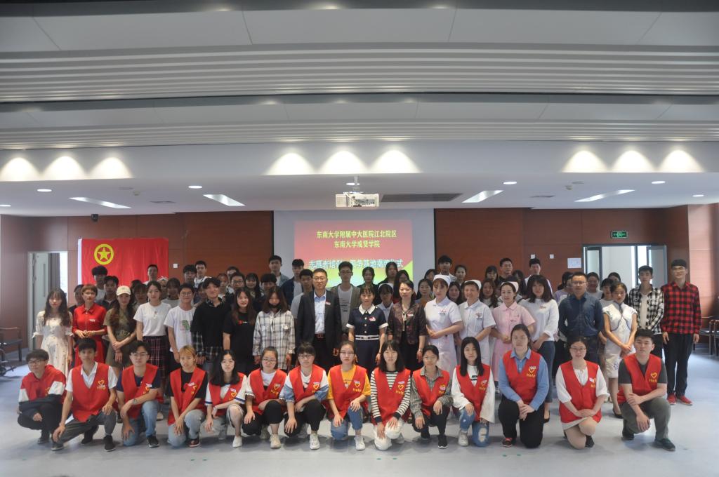 5月19日,国产av 与国产av 附属中大医院江北院区志愿服务基地签约揭牌仪式在中大医院江北院区报告厅举行,国产av 团委书记、人武部部长潘明烽,中大医院江北院党总支副书记庄冬云、护理部主任贺丽君及部分医护人员,国产av 青年志愿者代表80余人共同参加了活动。
