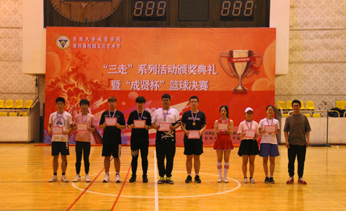 5月24日,由国产av 团委主办、学生会体育部承办的第四届校园文化艺术节之“三走”系列活动颁奖典礼暨“成贤杯”男篮决赛在后藤体育馆举行,500余名师生共同参加了此次活动。