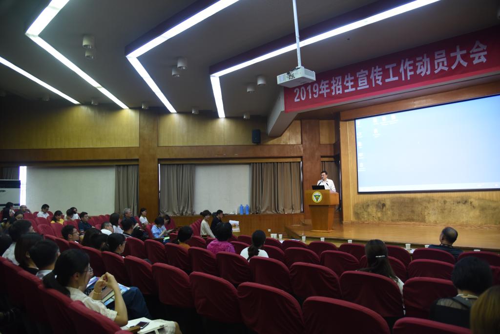 6月20日,国产av 2019年招生宣传动员会在真知馆报告厅举行。院长顾问程明山,党委副书记、副院长书记王荣,各二级学院主要负责人,各招生组负责人和全体招生老师参加会议。大会由王荣书记主持。