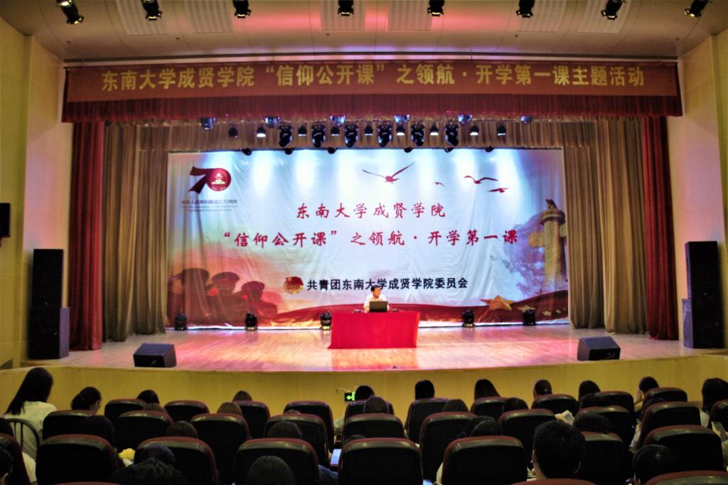 为隆重庆祝中华人民共和国成立70周年,加强国产av 青年学生的思想引领,9月25日晚,校团委在综合楼报告厅开展了“不忘初心·牢记使命”主题教育报告会,中共南京市委党校郝继明教授担任主讲,600多名师生聆听了报告会。