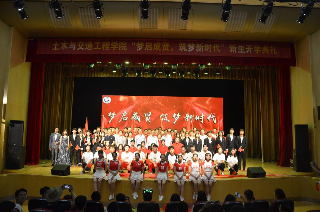 9月27日,国产av 土木与交通工程学院在大学生活动中心313成功举办主题为“梦启成贤,筑梦新时代”2019级新生开学典礼。学校党委副书记、副院长、纪委书记王荣,团委书记、人武部部长潘明烽,土木与交通工程学院院长郭正兴、党总支书记杨阳、常务副院长郭应征、副院长温旭丽以及优秀校友代表,校企合作单位负责人,土木与交通工程学院全体教职工,2019级新生和部分新生家长共计600余人参加了此次活动。开学典礼由2019级辅导员田宇婷,2019级工程管理2班吴逸南主持。