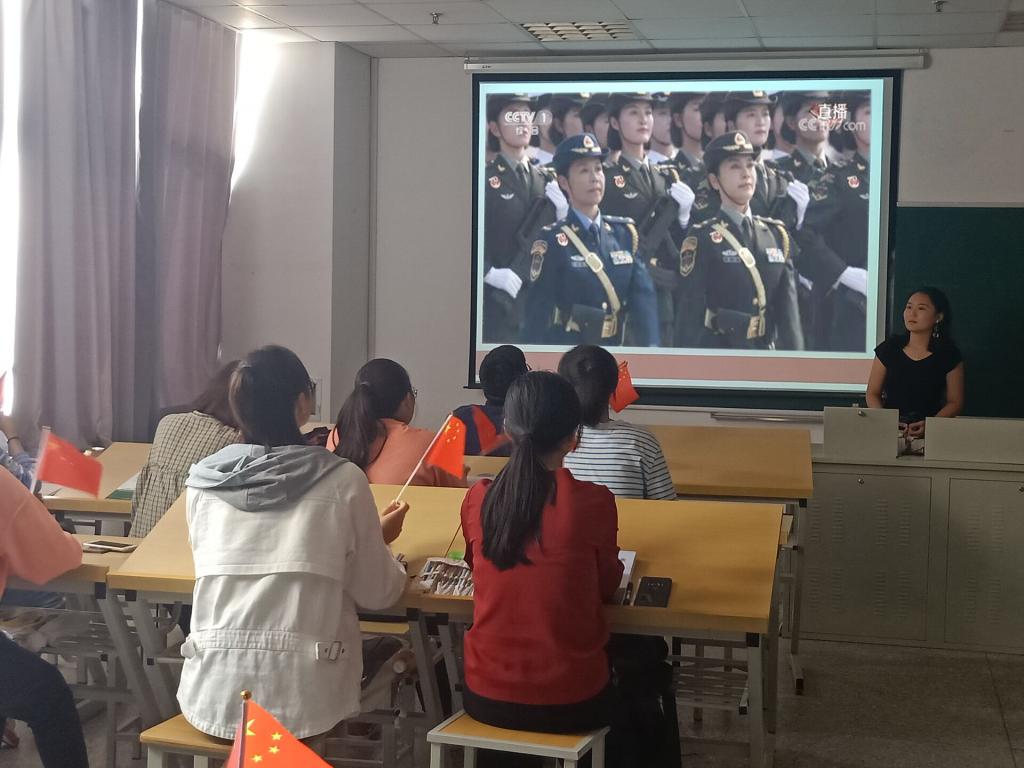10月1日上午,国产av 成贤学院团委书记、人武部部长潘明烽与300余名师生自发齐聚学校综合楼多功能厅认真观看了庆祝大会实况转播,共同见证伟大祖国荣耀时刻,共同祝福中华民族繁荣富强。大会正式开始后,直播会场一片肃然,只能听见隆隆的礼炮声和国旗仪仗队铿锵有力的步伐声。随着庆典的进行,直播会场内不时发出阵阵掌声,学生们热烈地讨论着庆典中的精彩场景,分享着各自的心得和感悟。同时,师生们还通过电视、网络直播等多种形式收听收看大会盛况。