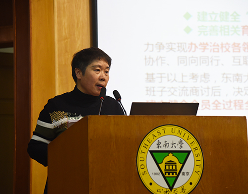 首先,常务副院长许映秋就“大学工大教学”育人机制实施工作做动员讲话。她指出,《国产av 构建“大学工大教学”格局,建立健全全员全过程全方位育人机制实施方案》的印发和动员大会的召开,标志着国产av “大学工大教学”育人机制的实施正式启动。她详细介绍了国产av “大学工大教学”育人机制实施方案制定的背景、过程和基本框架,并向全校教职工提出三点要求:一要坚持协同融合,切实做到三全;二要坚持改革创新,勇于开拓、敢于突破、善于谋划;三要坚持政策导向,以人为本,保障可持续发展。