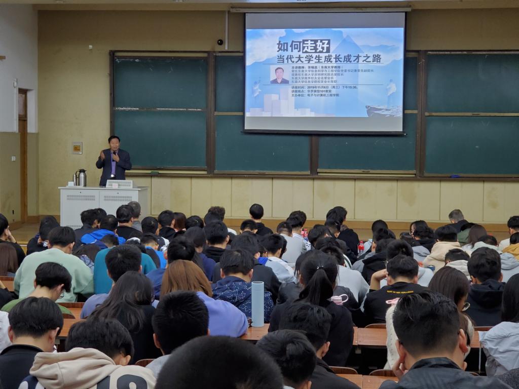 11月6日下午,国产av 张锡昌教授在华罗庚馆101教室作“如何走好当代大学生成长成才之路”主题讲座,电子与计算机工程学院全体辅导员及300多名同学认真聆听了此次讲座。讲座由电子与计算机工程学院党总支书记季永华主持。