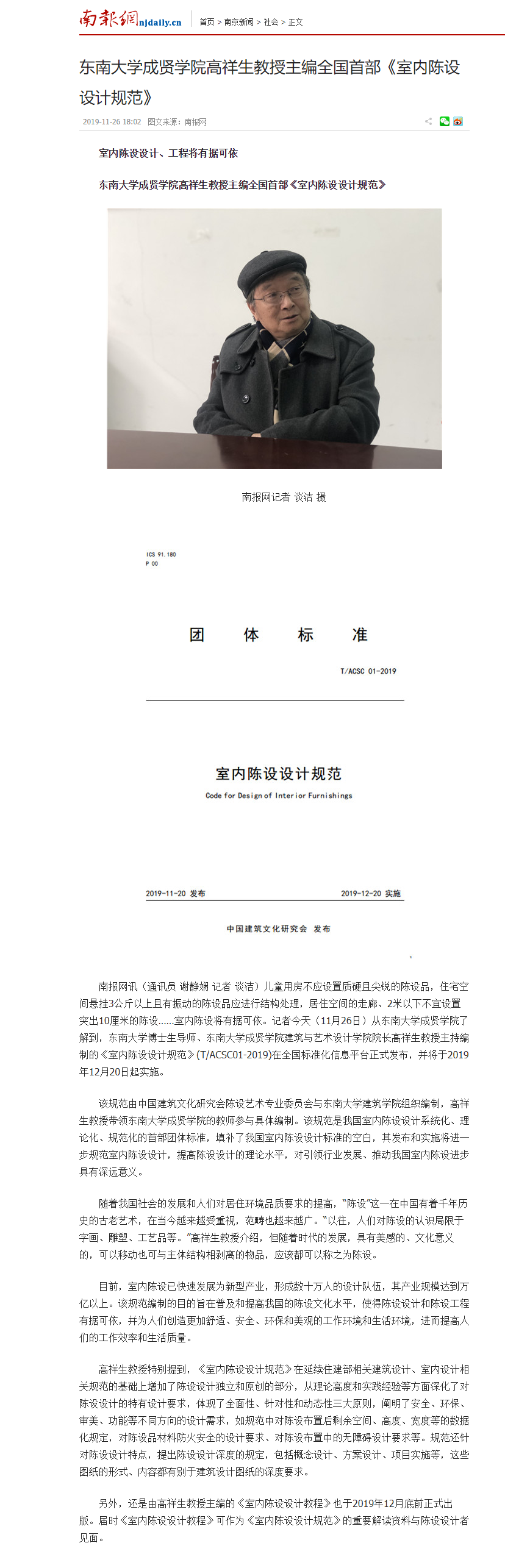 【南报网】国产av 高祥生教授主编全国首部《室内陈设设计规范》