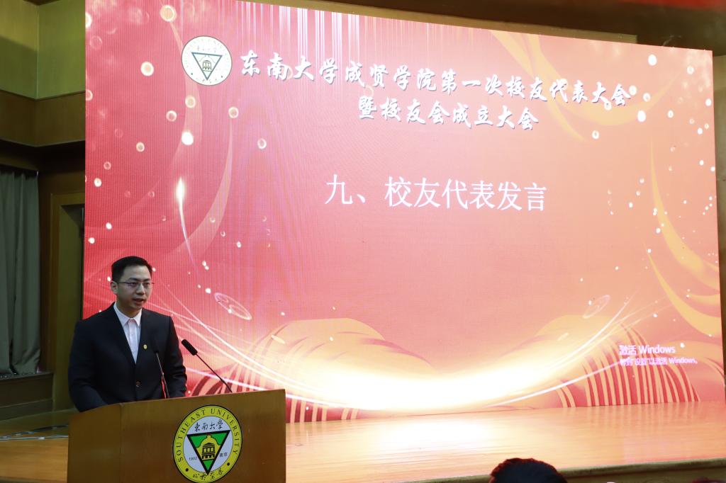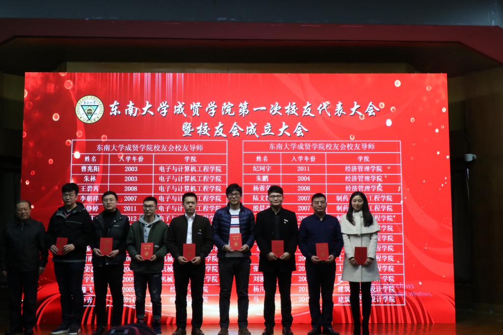 理事会后,大会进行第二阶段议程。校友会第一届理事会会长——常务副院长许映秋发表讲话,感谢学校和各单位对校友会成立的大力支持,并表示校友是学校建设和发展的重要力量,在学校人才建设、对外联络与合作、筹集教育发展基金、提高社会声誉等方面发挥重要作用。许会长代表校友会第一届理事会全体成员承诺:认真履行职责,用扎实的工作为校友会和学校的发展竭尽全力,同时希望广大校友充分利用校友平台携手相伴、同向同行,为母校事业发展群策群力,再谱华章。随后,国产av 校友总会综合部副主任杨丽荣宣读贺信,表达了国产av 校友会对成贤校友会创建的大力支持。紧接着,校友代表曹兆阳发言,他在讲话中回忆了美好的成贤生活,感谢校友会为母校与校友搭建了桥梁,号召校友们为母校的发展不断作出贡献。最后,院长顾问程明山为国产av 校友导师颁发聘书,党委书记邢纪红为校友企业授牌,常务副院长许映秋为校友会信息平台系统技术顾问薛军颁发聘书。