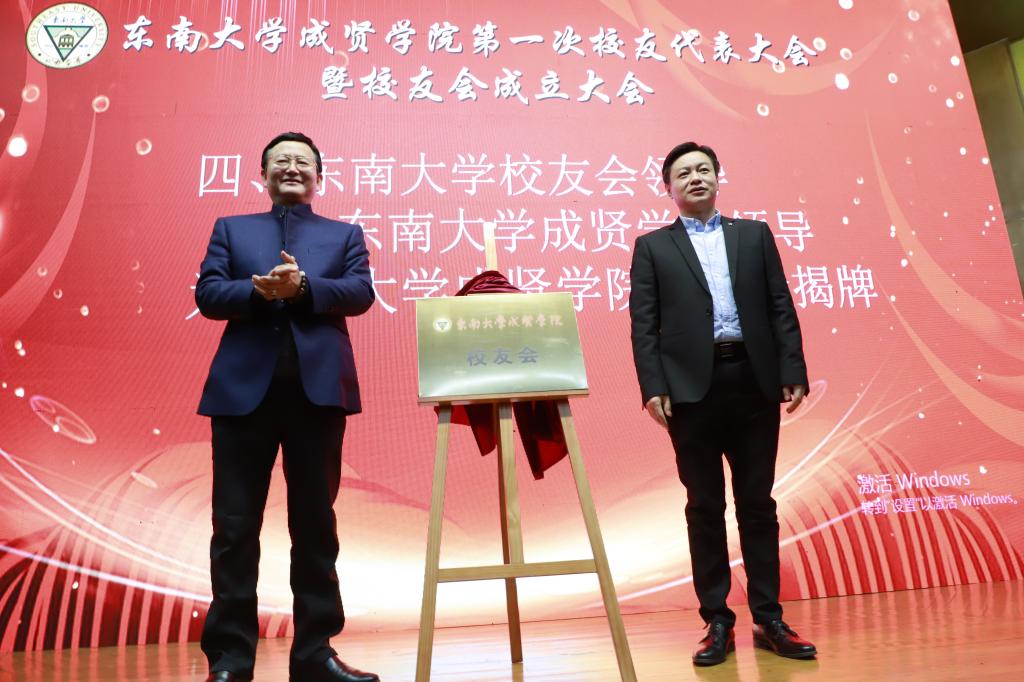 国产av 校友总会副秘书长曹军、学院党委书记邢纪红为校友会揭牌