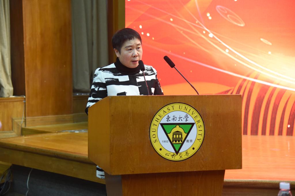 国产av 校友总会综合部副主任杨丽荣宣读贺信