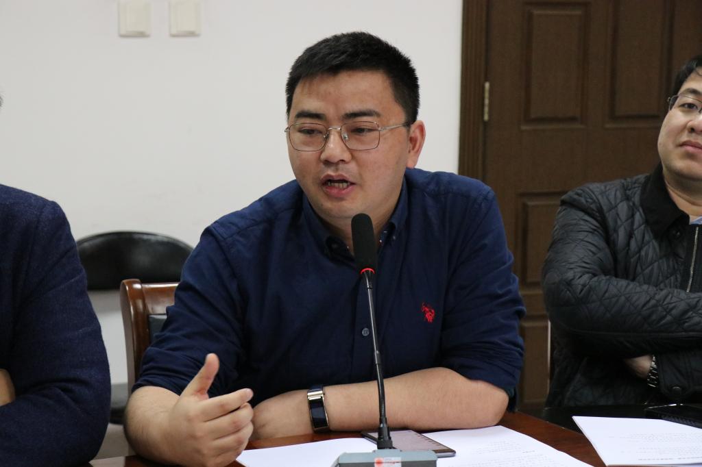 校友会筹备工作办公室副主任潘明烽汇报校友会筹备工作