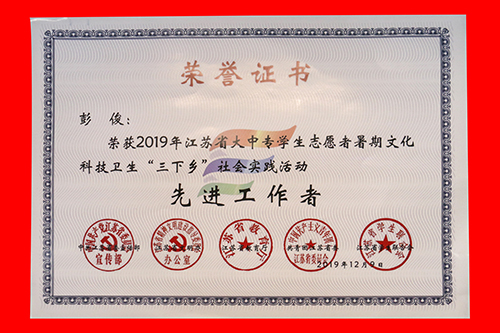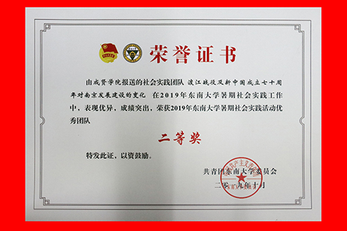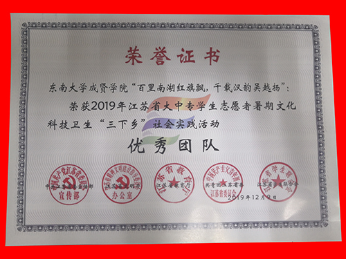 2019年国产av 社会实践成果卓越,在江苏团省委社会实践总结表彰和国产av 社会实践总结表彰中荣获多项表彰。“百里南湖红旗飘,千载汉韵吴越扬”实践团荣获2019年江苏省大中专学生志愿者暑期文化科技卫生“三下乡”社会实践活动“优秀团队”;教师彭俊获评2019年江苏省大中专学生志愿者暑期文化科技卫生“三下乡”社会实践活动“先进工作者”。“青梦计划”实践团和“渡江战役及新中国成立七十周年对南京发展建设的变化”实践团荣获2019年国产av 暑期社会实践活动“优秀团队二等奖”。