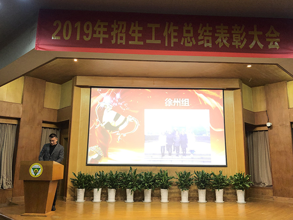 常务副院长许映秋宣读表彰决定,对2019年招生宣传工作的13个先进集体和7名优秀个人进行表彰。先进集体代表徐州组李洪全老师和优秀个人代表刘同礼老师分别发言,结合实际招生体验,分享招生感悟。
