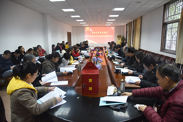 1月10日下午,学校在真知馆105会议室召开2019年度机关作风建设考评会议。学校党政领导、中层以上领导干部参加会议。考评会由党委书记邢纪红主持。