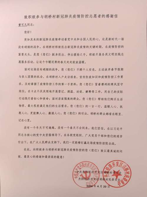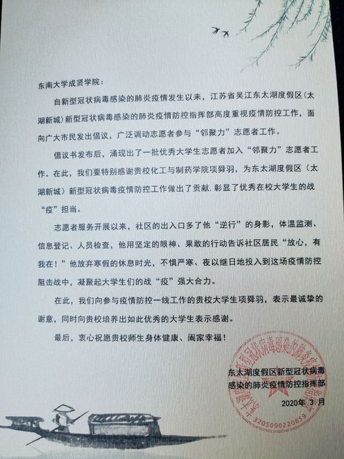 疫情期间,返乡的成贤学子在做好自身安全防护的基础上,积极参与家乡的疫情防控工作,有的深入基层进行疫情排查和防控,有的热心捐款捐物,还有的协助地方公安、医疗卫生、交警等部门开展各种形式的志愿服务活动。各单位的来信中,对学生们在抗击疫情中做出的大量工作表示感谢,对他们无私奉献的精神表示赞许。