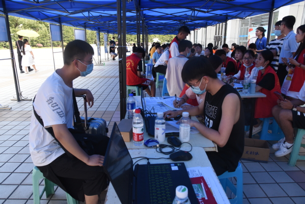 全校各单位结合实际,严密细致地开展学生报到的相关工作,层层压实疫情防控工作责任,既严格有序,又注重人文关怀。在报到现场,工作人员、志愿者一直温馨提醒,热情引导,帮助学生迅速完成报到流程;小推车、汽车等工具助力,帮助学生搬运行李;校门口搭建帐篷,撑起一片清凉,供远道而来的家长休息;多组风扇、水冷风机带来徐徐凉风,为学生解暑降温。多措并举,为学生们提供了暖心、安心、贴心、温馨的服务和保障。