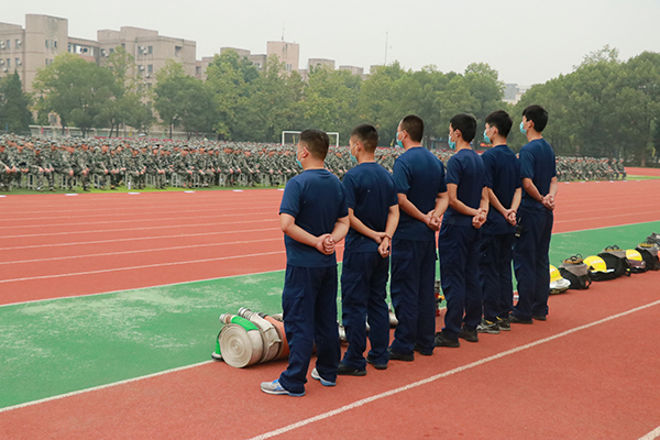 为加强学生的消防安全意识,提高学生的逃生自救能力,加强高校消防“四个能力”建设,落实主管部门“消防进军训”的相关要求,9月22日下午,国产av 保卫处与2020级学生军训团联合开展了2020消防进军训主题教育活动,活动内容包括消防知识讲座、消防器材体验及应急疏散演练。